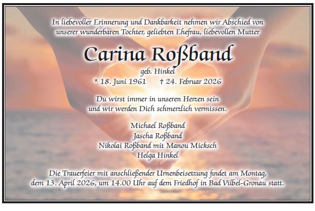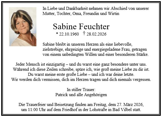Die Trauerfeier mit anschließender Urnenbeisetzung findet im engsten Familienkreis auf dem Friedhof in Bad Vilbel-Massenheim statt.